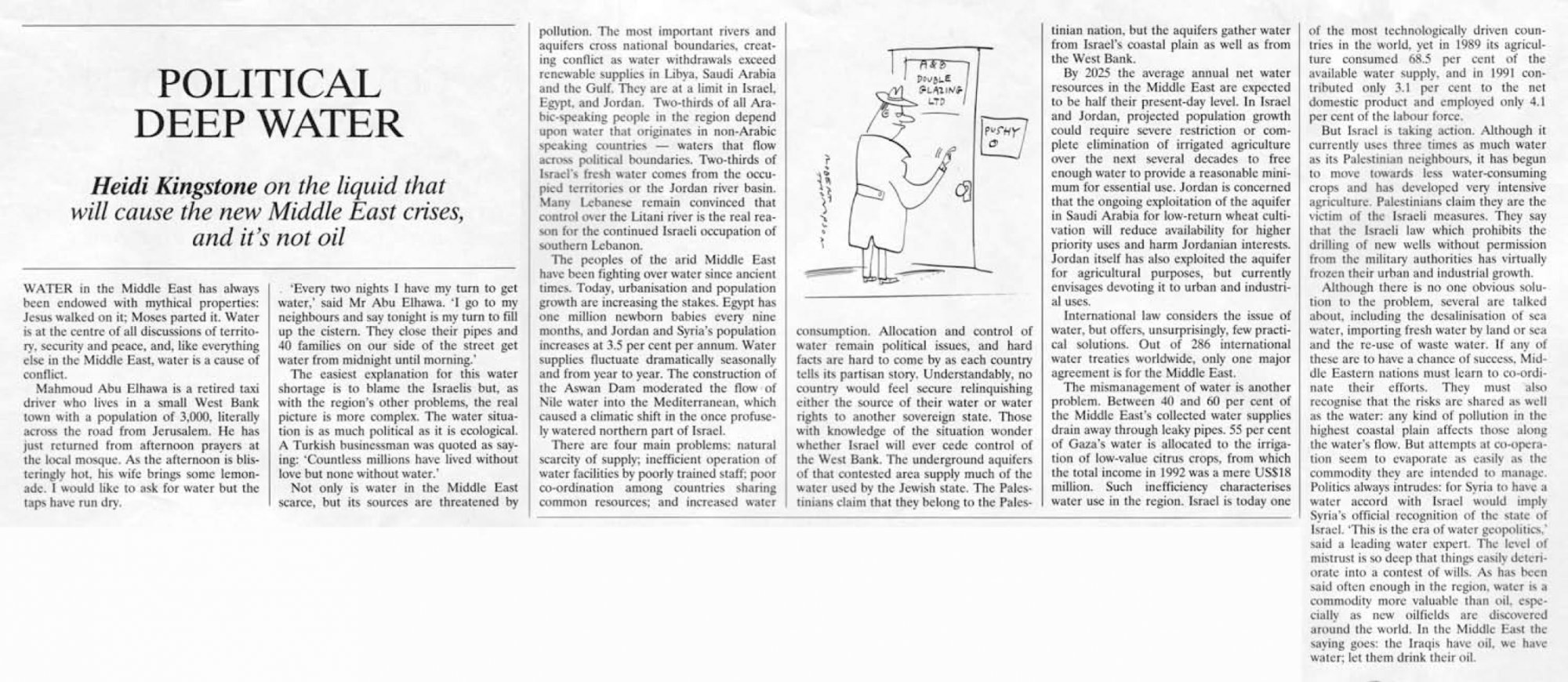 Heidi Kingstone on the liquid that will cause the new Middle East crises, and it's not oil.
