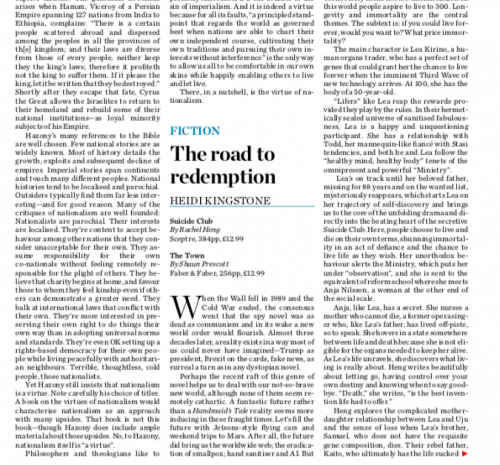 Continue readingSuicide ClubBy Rachel HengSceptre, 384pp, £12.99 The TownBy Shaun PrescottFaber & Faber, 256pp, £12.99 When the Wall fell in 1989 and the Cold War ended, the consensus went that the spy novel was as dead as communism and in its wake a new wo...
