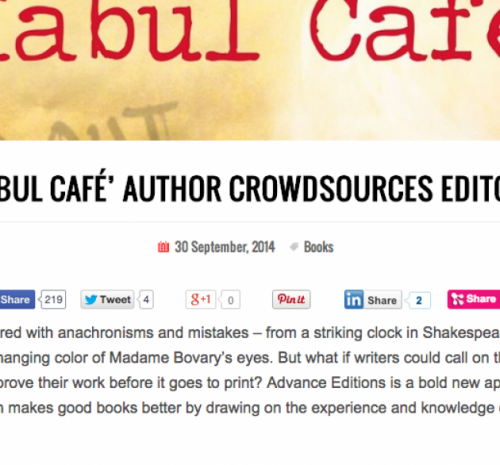 Continue readingI’m absolutely delighted to be featured in The Bookseller’s first Independent Author Preview. A new initiative to give some exposure to indie-published titles, Dispatches from the Kabul Café was made an Editor’s Pick by Independent Author Preview ...