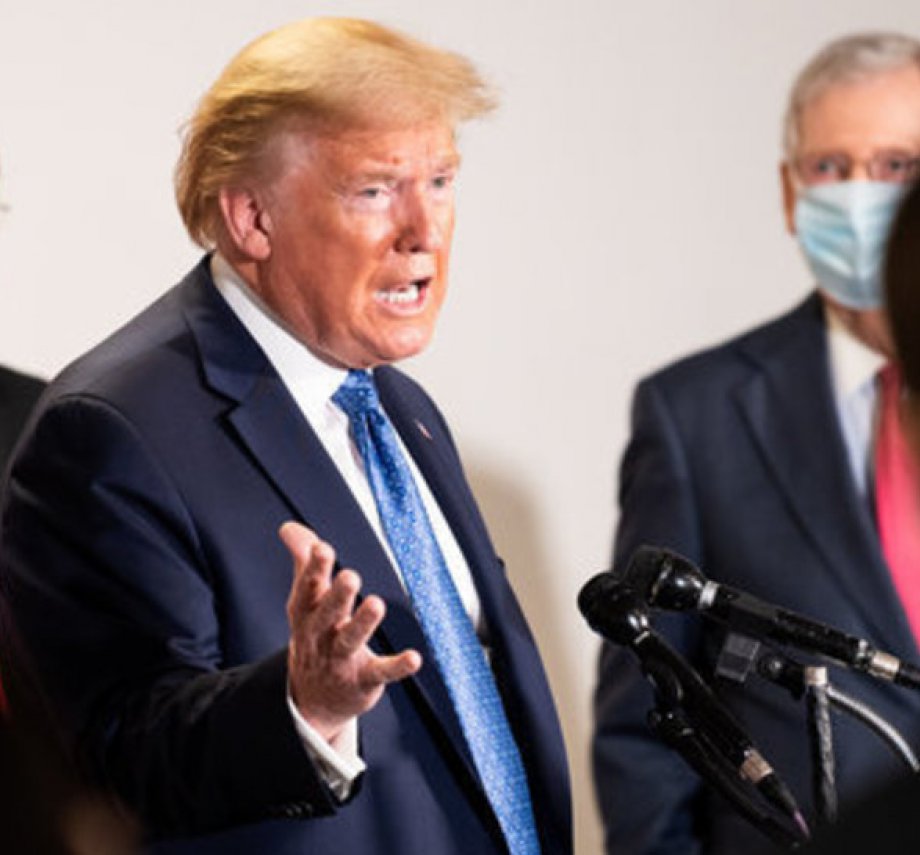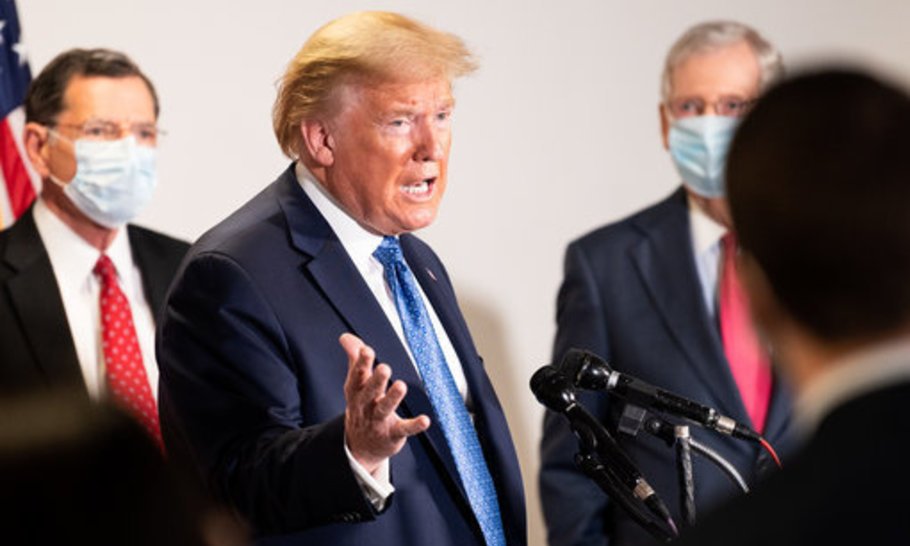 May 19, 2020 - Washington, DC, United States: President Donald Trump talking with the press after attending the Republican caucus lunch at the Hart Senate Office Building. (Photo by Michael Brochstein/Sipa USA)