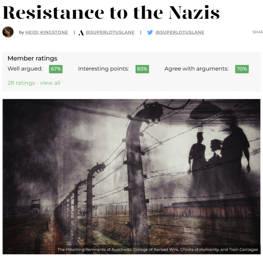 “The British would never have gone to the slaughter like the Jews did in Nazi Germany,” someone once said to me. That sentence angered me and stopped me in my tracks. Many years later, I am still reacting to its ignorance and arrogance. Frankly, what could all the victims of the Holocaust —Jews, Sinti, Roma, homosexuals, political prisoners — have done in the face of the terrifying German army? There weren’t many who went willingly to their death.
