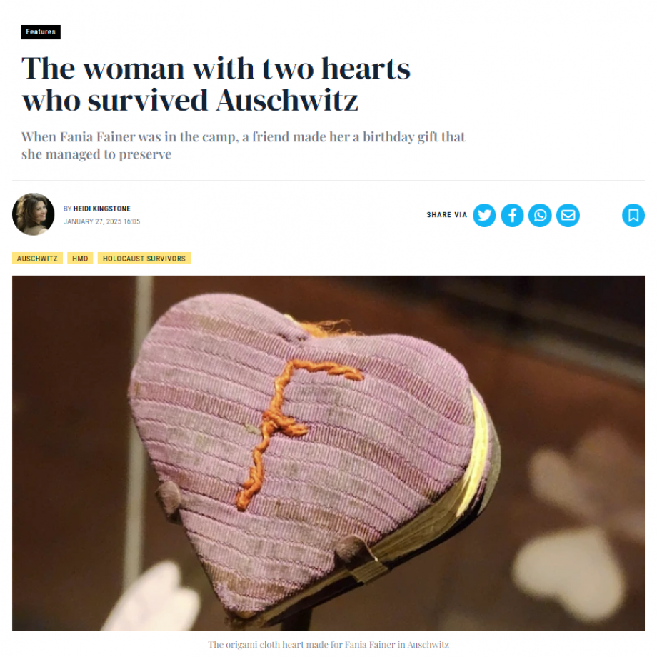 Fania Landau, as she was then, turned 100 years old on December 12. It’s a miracle that both the heart and Fania survived the liberation of Auschwitz 80 years ago.